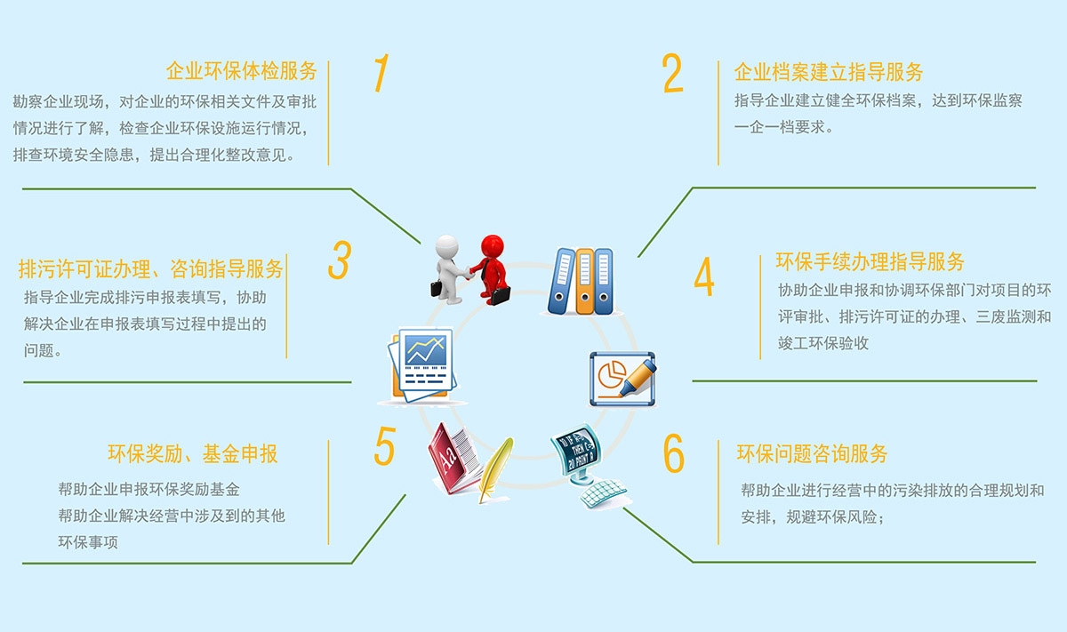 - 六大基礎服務定制服務環保管家服務項目為企業服務項目1、環境咨詢服務(環評、監理、驗收、環統、污染治理技術、環境認證、有機產品認證)2、污染源排放在線監測監控設施第三方運營3、清潔生產審核...